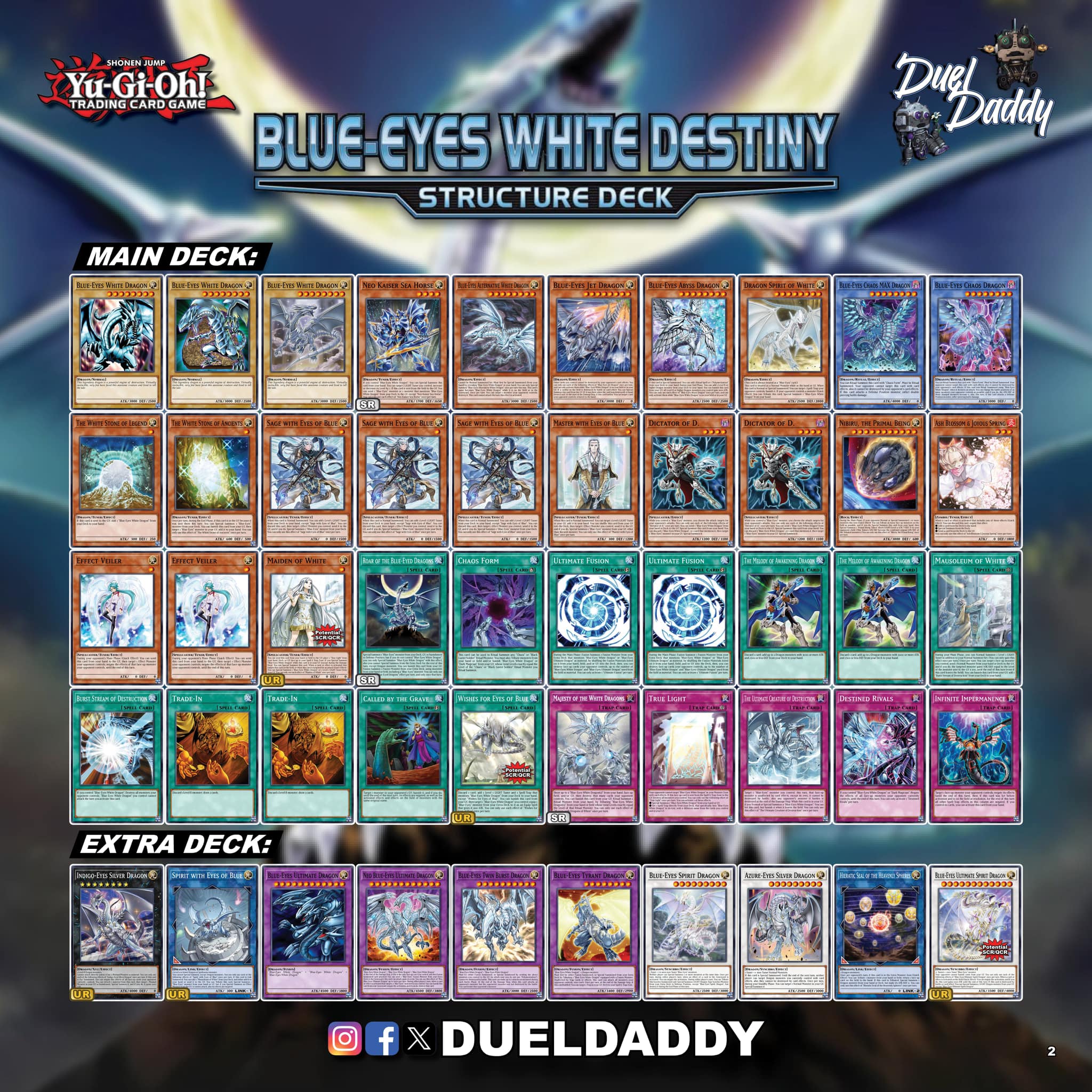 Toàn bộ những lá bài quan trọng khác của Blue-Eyes như Blue-Eyes White Dragon, Sage with Eyes of Blue, Blue-Eyes Spirit Dragon cũng đều được reprint, giúp mua SD là chắc chắn đủ core để chơi.