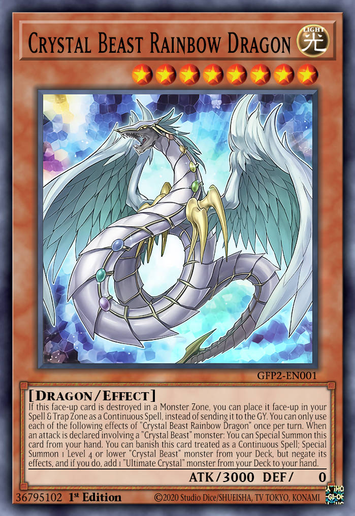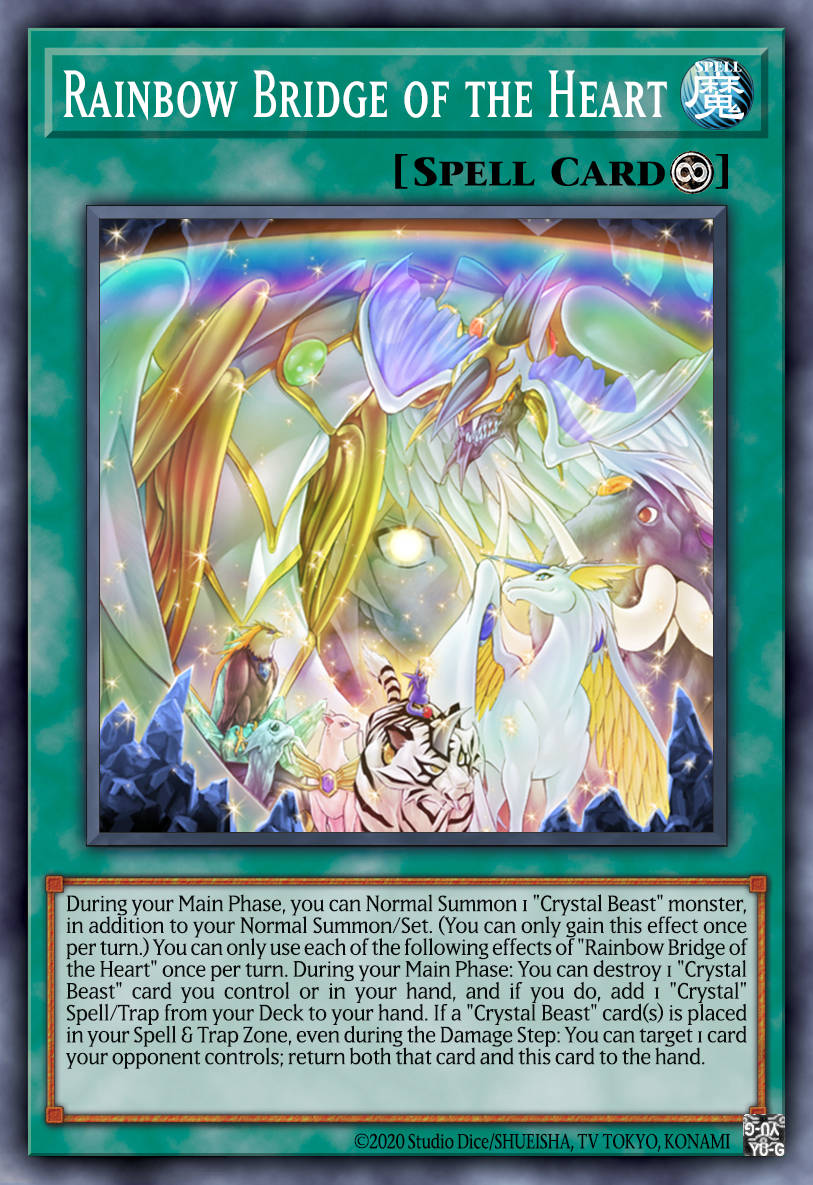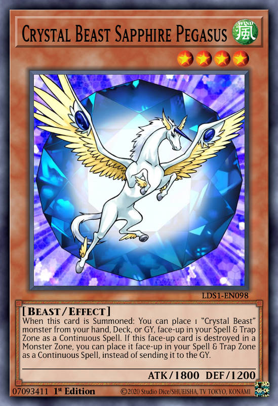 Để làm được điều này, Crystal Beast Sapphire Pegasus là keycard, 1 card Rank 4 khi có thể đặt Crystal Beast Rainbow Dragon, từ đó gọi ra Crystal Beast Topaz Tiger thực hiện XYZ Infernal Flame Banshee.