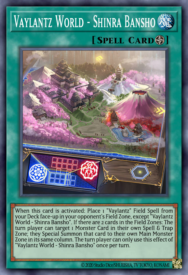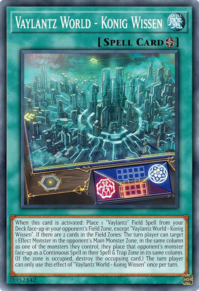2 Field Spell của Vaylantz có khả năng đặt lá bài còn lại sang sân đối thủ, ngăn cản những Infinite Impermanence hay Evenly Matched. Shinra Bansho biết gọi những Crystal Beast hay Snake-Eye ở S/T Zone, hoạt động khá khớp với chiến thuật, Konig Wissen thì có thể coi là giải pháp phá bàn đối thủ khi đi sau.