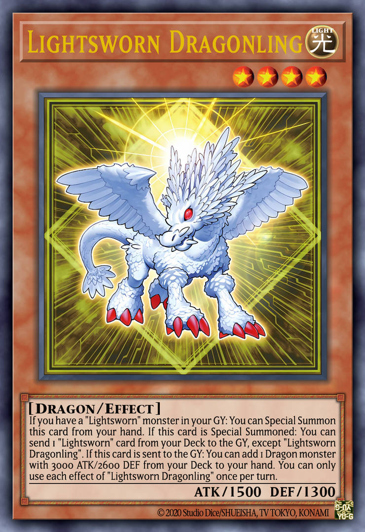 Dragonling, Weiss và Minerva là những sự bổ sung tuyệt vời cho Lightsworn trong LEDE. Dragonling là một extender cực mạnh, biết tự nhảy và dễ dàng gọi thêm 1 Lightsworn khác, có thể coi như là 1 card Rank 4 / Synchro 8.