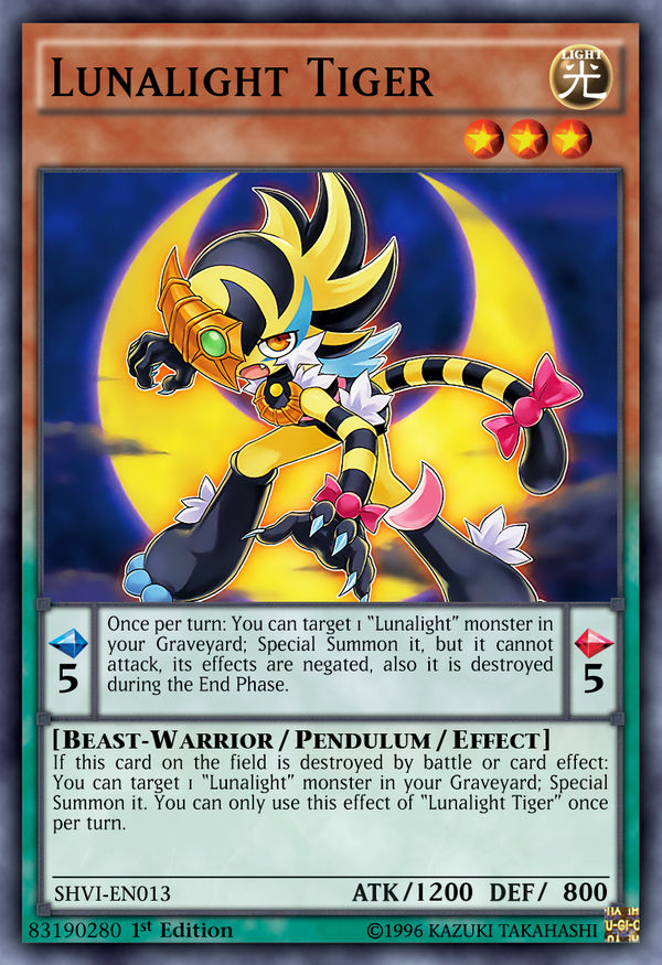 Lunalight Tiger mới được thả 2 đã đánh dấu sự trở lại của một engine đầy mạnh mẽ. Tất cả các Lunalight đều có thể toolbox ra nhau bằng nhiều cách: Kaleido Chick send Yellow Marten, search Light Perfume, Light Perfume sau khi hồi sinh 1 Lunalight thì search Tiger. Việc Pendulum effect của Tiger không hề once per turn chính là cơ hội để loop hồi sinh các Lunalight nhiều lần. Nếu xử lý khéo léo với những cú đẩy của Yellow Marten và Zephyros, thậm chí có thể tạo 2-3 XYZ Rank 4.