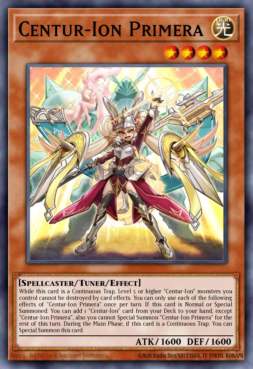 Một trong những starter mạnh nhất, khi được triệu hồi Primera có thể search bất kỳ Centur-Ion nào lên tay. Các target thường là Stand Up Centur-Ion!, Wake Up Centur-Ion để thực hiện combo. Khả năng thứ hai của Primera là biết tự triệu hồi bản thân từ S/T Zone, giúp cho Trudea, Stand Up, Emblema Oath dễ dàng access được vào lá bài này và full combo. Ngoài ra, khi là Continuous Trap Primera còn biết bảo kê cho các Centur-Ion Lv5 trở lên khỏi những Raigeki, Dark Hole,...