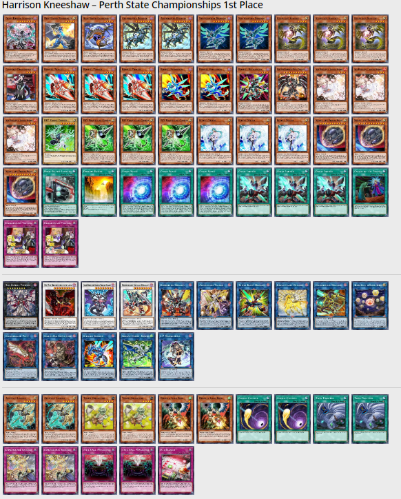 Harrison đã giành được Vị trí số 1 tại Giải vô địch Bang Perth với Pure Dragon Link. Đây là một điều thật sự bất ngờ khi chúng ta thấy được phiên bản này, do Dragon Link thường được kết hợp với các Engine rất mạnh khác vốn đã và đang hoành hành trong Metagame. Tuy vậy, phiên bản thuần là một lựa chọn phù hợp với ngân sách mà vẫn có thể hoạt động tốt ở các cấp độ chơi cao.