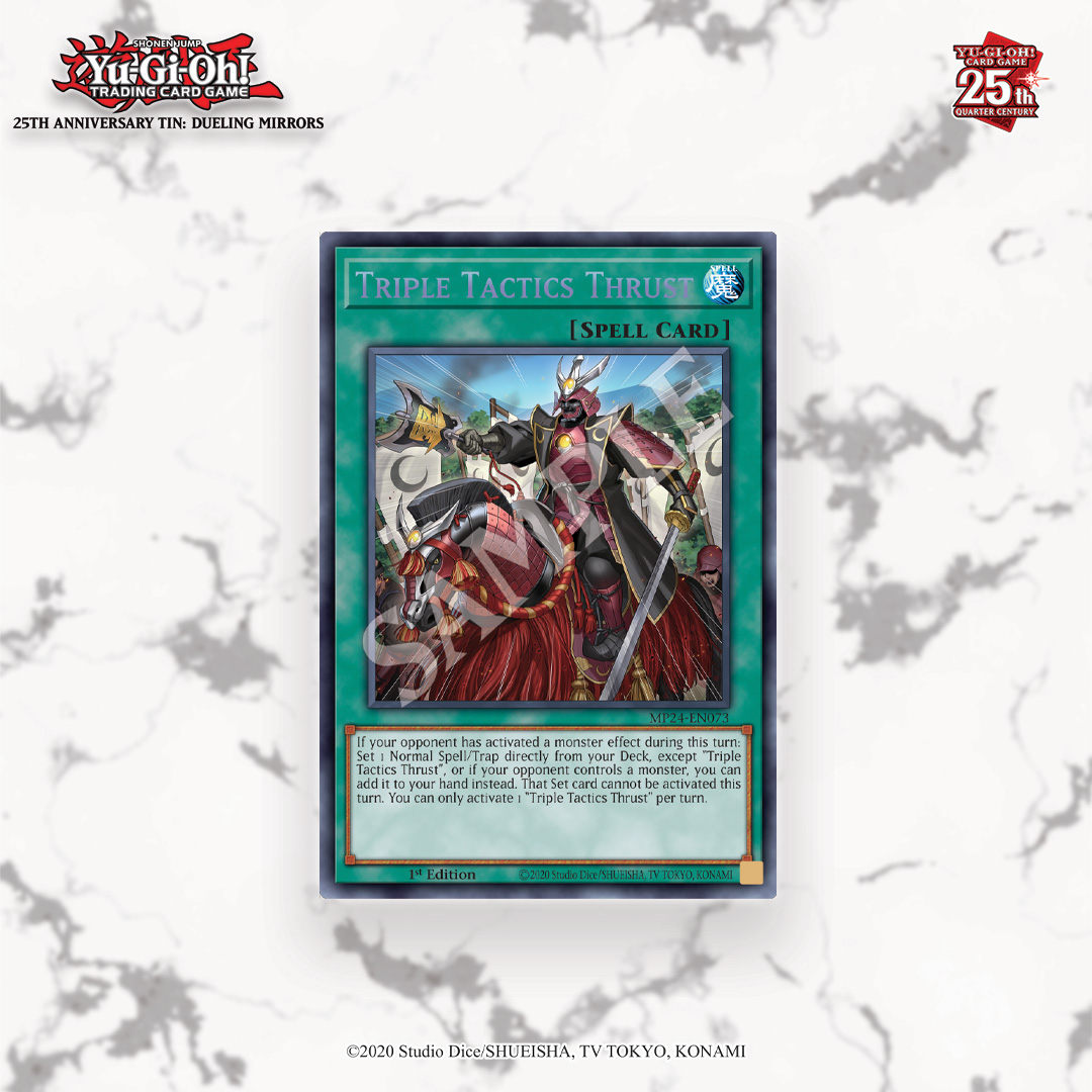 Trong pool 400 cards, sẽ có 50 lá bài ở foil Quarter Century Secret Rares. Trong đó, 16 cái tên đã được xác định và in bên cạnh của Tins. Mỗi Mega Packs đều chứa 1 Quarter Century Secret Rares, như vậy một Tin có đến 3 lá bài foil này. Cơ hội không thể tuyệt vời hơn cho các nhà sưu tập!