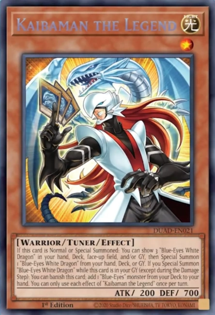 Blue-Eyes bất ngờ nhận được support với Kaibaman the Legend. Lá bài có khả năng kéo thẳng một Blue-Eyes White Dragon lên sân, tuy nhiên người chơi cần có tới 3 "cục tạ" BEWD (các build Blue-Eyes hiện đại thường chỉ dừng ở con số 2). Dù vậy, đây cũng là một khả năng mới mẻ, chờ các fan Rồng Trắng khai phá tiềm năng.