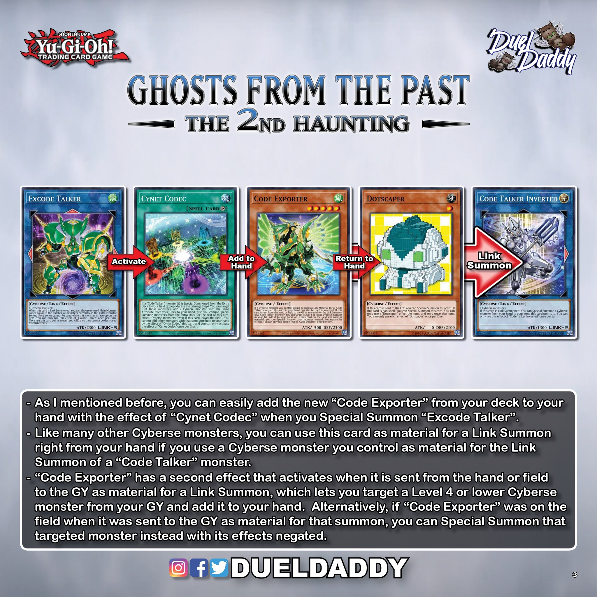 Như hứa hẹn, Ghost From The Past 2 mang tới cho người chơi dàn quái thú Cyberse mới, tiêu biểu nhất chính là Decode Talker Heatsoul, cũng như in lại một số lá bài cần thiết như Dotscaper. Khả năng bốc bài trong cả 2 lượt của Heatsoul hứa hẹn sẽ giúp cho Archetype trở nên mạnh mẽ hơn, ngoài ra quái thú mới Code Exporter cũng cung cấp cho Archetype một lựa chọn khác để tối ưu việc Triệu hồi Link, cũng như là một quái thú hệ Gió để Cynet Codec có thể search được.