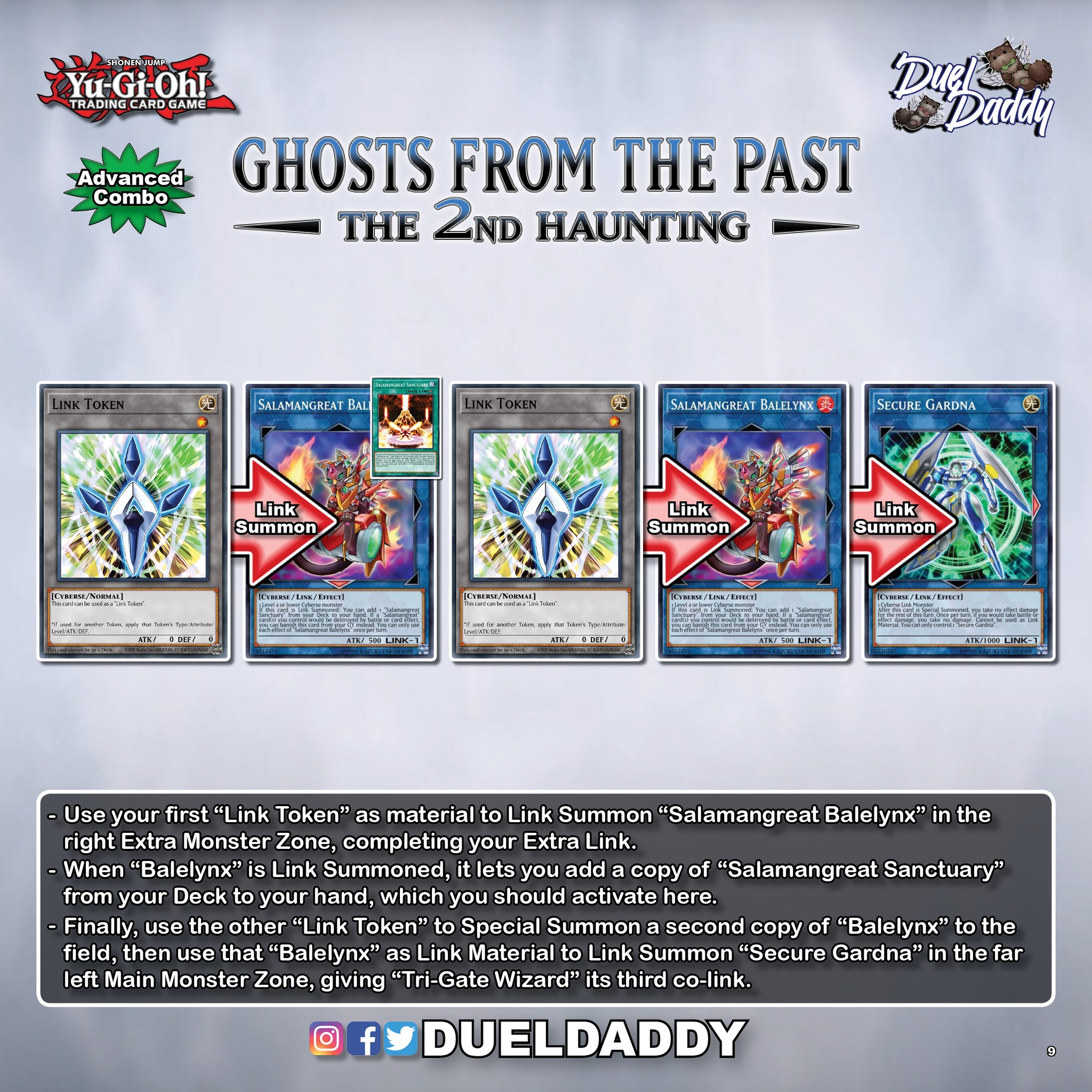 Dùng token thứ nhất để triệu hồi Salamangreat Balelynx ở ô Extra Monster Zone còn lại, lúc này Extra Link đã hoàn tất. Kích hoạt khả năng của Balelynx để add lên tay Salamangreat Sanctuary từ Deck, và kích hoạt luôn tại Field Zone. Cuối cùng, sử dụng Token còn lại để gọi lên Balelynx thứ hai, và sau đó là Secure Gardna ở ô bên trái Tri-gate Wizard, lúc này Tri-Gate đã có 3 mũi Co-linked.