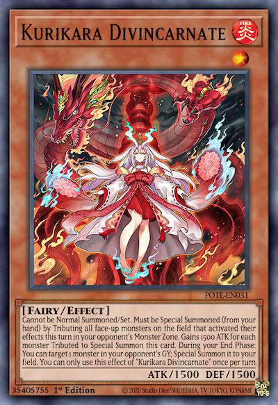 Thế nhưng với sức sáng tạo không ngừng nghỉ, các bài thủ chuyên nghiệp phương tây đã nghĩ ra phương án đối phó với Kashtira - đó chính là Kurikara Divincarnate. Chỉ cần rút lên một lá bài Kurikara thì mọi cục diện của trận đấu sẽ thay đổi. Điển hình cho sự hiệu quả này chính là chức vô địch YCS London 2023 của bài thủ nổi tiếng Samir Bachar khi anh đã sử dụng được 2 copy Kurikara từ trên tay trong trận chung kết bằng bộ bài Spright Mellfy. Chỉ với lá bài này, Samir đã hủy diệt rất nhiều Kashtira trong giải đấu đó một cách dễ dàng. Giá trị của Kurikara Divincarnate cũng vì thế mà tăng vọt lên như diều gặp gió, và hiện tại đã giữ vững ở khoảng 50-60$/copy ở một số trang web định giá danh tiếng.