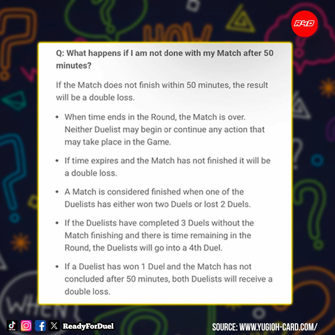 Vào tối 29/7, một thay đổi về luật End of Match được Yu-Gi-Oh! TCG cập nhật đã gây xôn xao cộng đồng. Cụ thể, thời gian mỗi Round tăng lên 50 phút, nhưng hết 50 phút không xác định được kết quả thì cả 2 người chơi đều phải nhận kết quả thua (Double Loss).