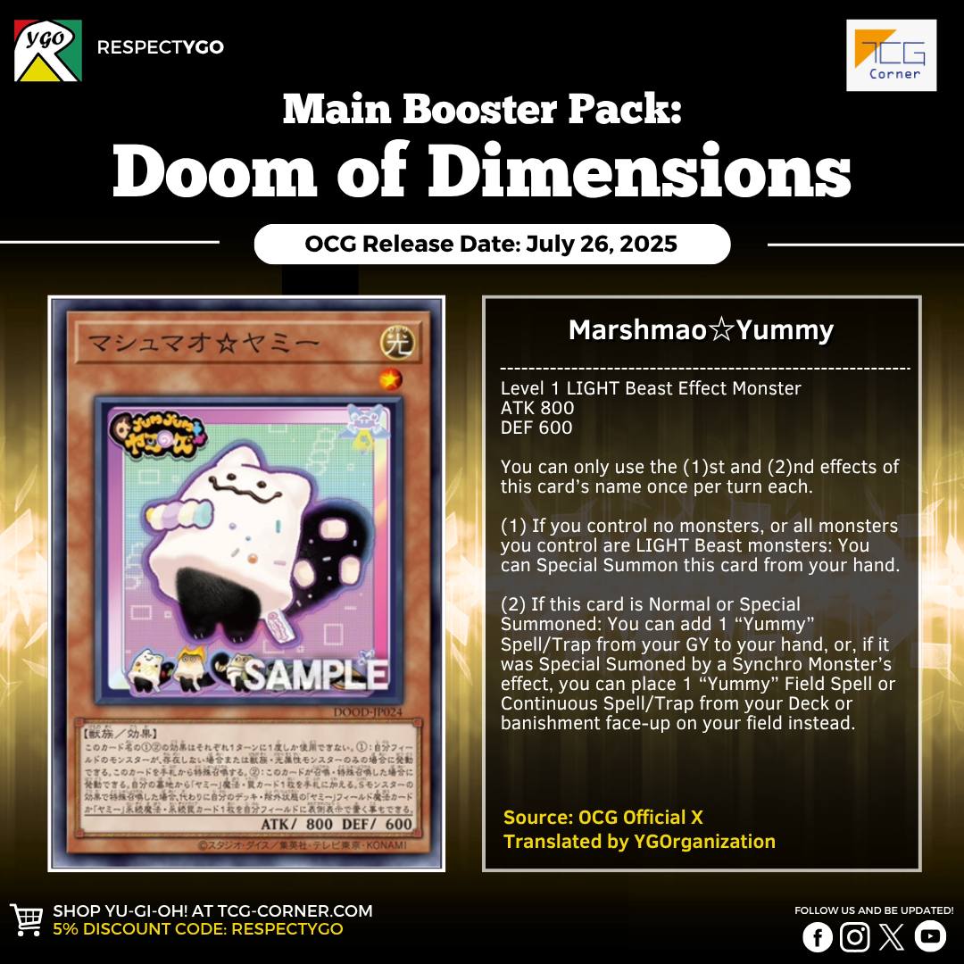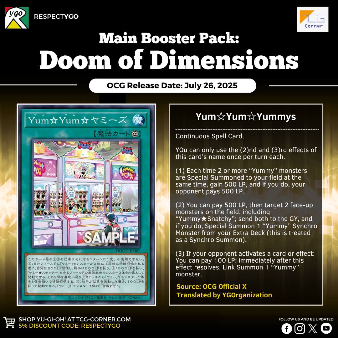 Không nằm ngoài dự đoán, bộ 3 meta từ Deck Build Pack đều sẽ nhận thêm 2 support trong Doom of Dimensions. Trong đó, bạn mới của Yummy được đánh giá cao nhất và nhiều khả năng bộ bài này sẽ vươn lên dẫn đầu OCG.