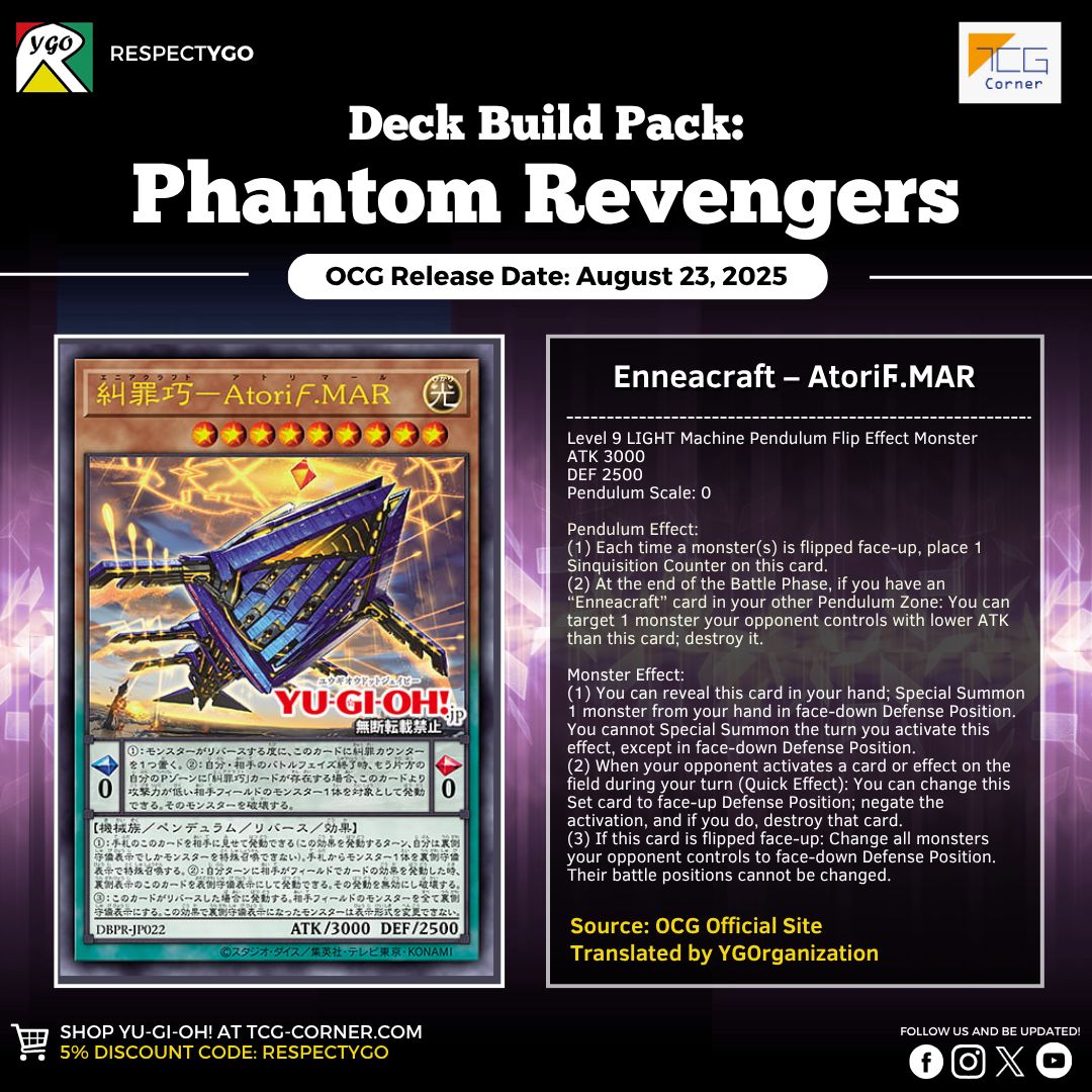 Theme tiếp theo được leak trong Deck Build Pack Phantom Revengers với 10 lá bài mới. Chiến thuật tập trung vào Flip Pendulum!