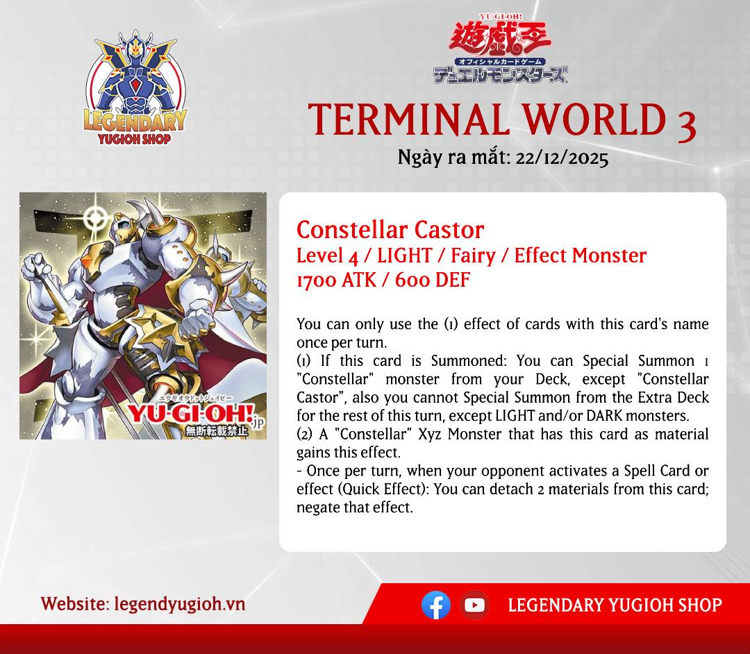 Terminal World 03 tiếp tục mang đến những support rất mạnh cho lore deck, lần này là Tellarknight/Constellar, ngoài ra còn có X-Saber và 2 archetype khác.