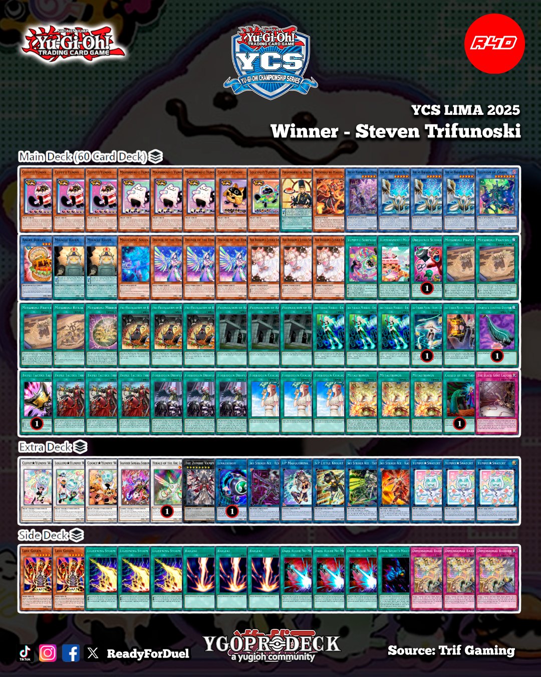 Tiếp tục đồng hành cùng "best deck" của mình Yummy, Trif đã sử dụng build cực dị khi mix thêm không chỉ Mitsurugi mà còn engine Ritual với Nouvelles, Miracle Raven,... để lên ngôi vô địch YCS Lima 2025.