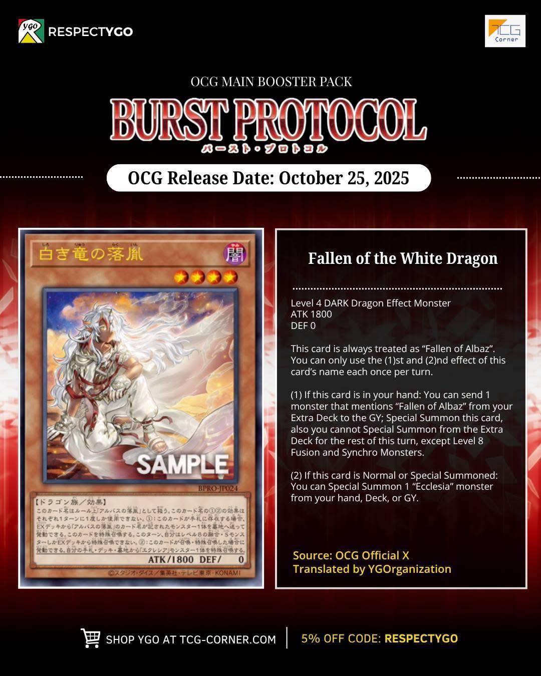 2 lá bài mới rất mạnh cho Branded/Albaz. Trong đó Fallen of the White Dragon không khác gì Ext Ryzeal! Ngoài ra, Exorsister có boss mới còn Rescue-ACE sẽ có Link 4!