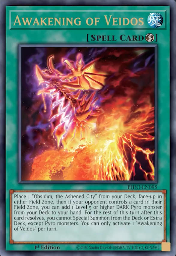 Obsidim, The Ashened City - Field Spell của bộ bài, tái hiện lại cảnh 1 thành phố đang bị hủy diệt bởi núi lửa phun trào, tương tự như thảm hoạ Pompeii khi nào. Và trong ngọn núi lửa phun trào đó đánh thức Veidos dậy. Veidos có tạo hình tương ứng với Dragon God trong Dark Soul. Ngay cả sự trỗi dậy của nó trong artwork của Awakening of Veidos cũng gần như rep 1:1 với Dragon God của Cinematic Dark Soul luôn.