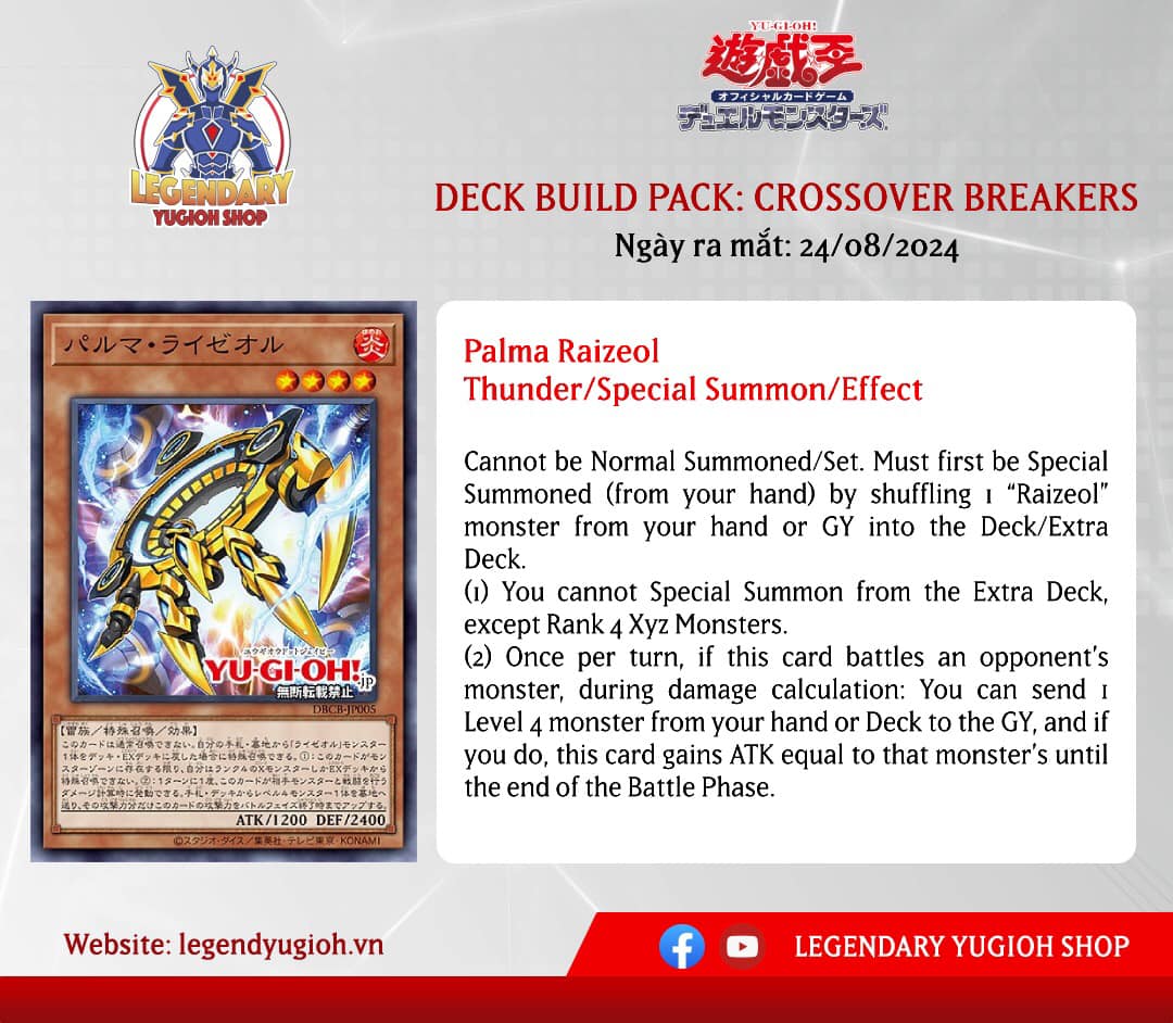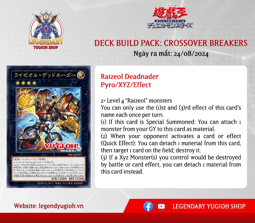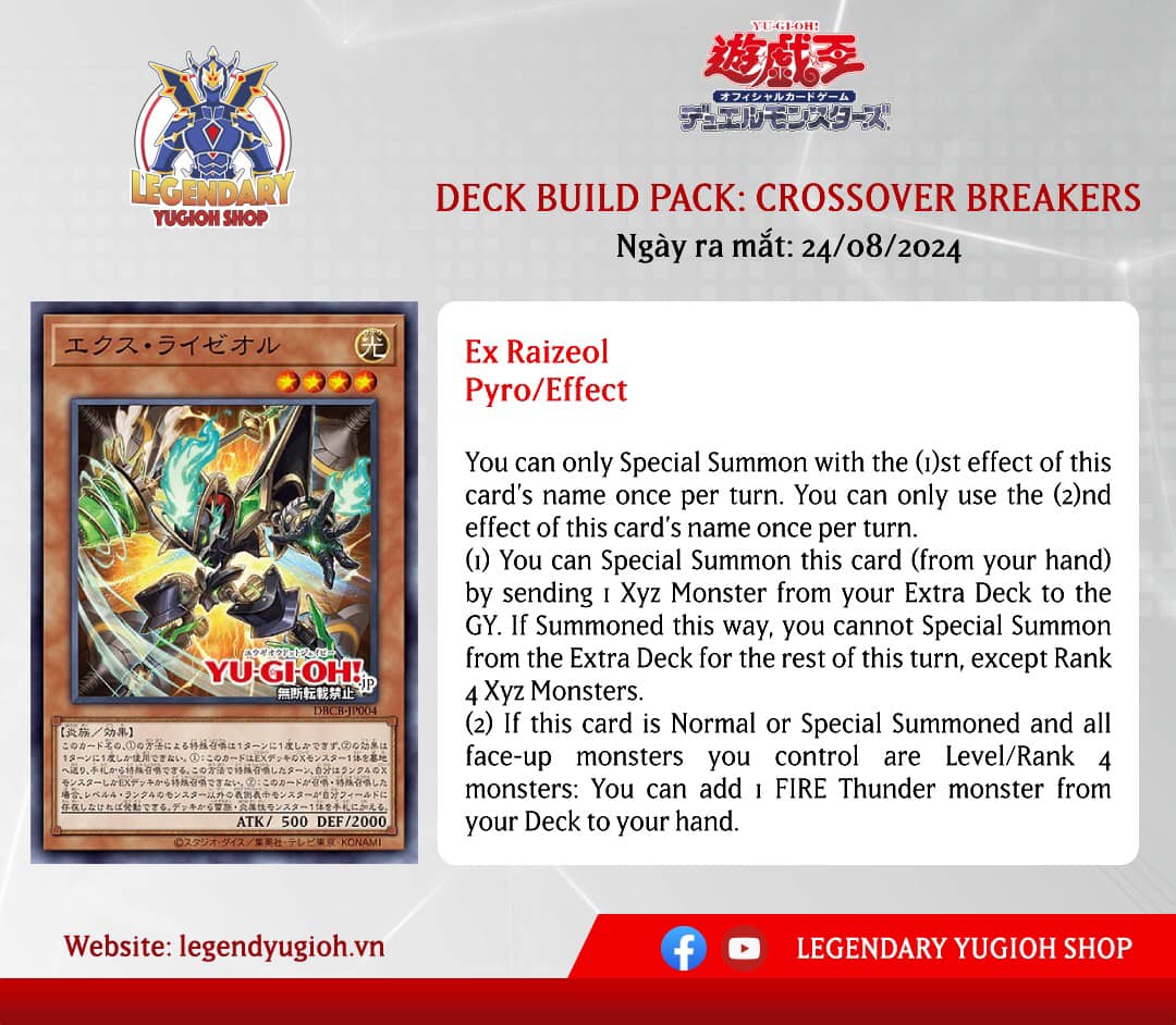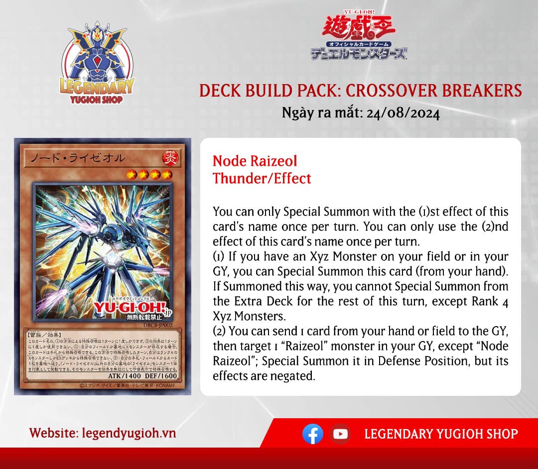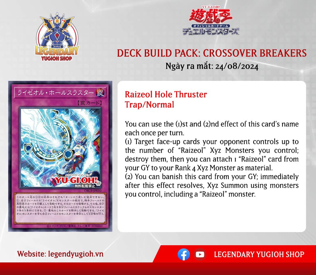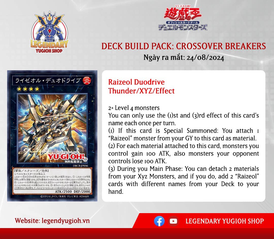 Archetype mới trong Deck Build Pack: Crossover Breakers đã chính thức lộ diện. Raizeol xoay quanh Rank 4 XYZ với khả năng spam quái khá mạnh. Với các support trong tương lai, đây hứa hẹn sẽ là bộ bài nhiều tiềm năng.