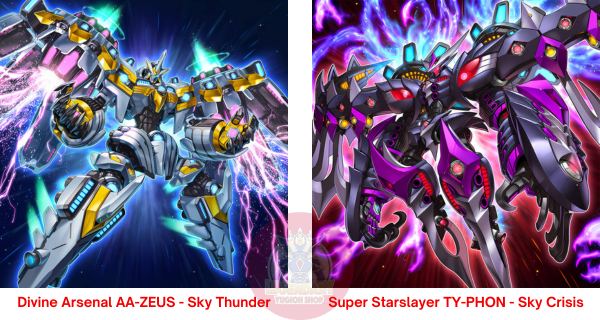 Trải qua trận chiến Titanomachy làm rung chuyển cả đất trời và tìm ra 1 thế hệ mới - thế hệ của các vị thần, những tưởng thiên địa đã yên bình, thế nhưng, hóa ra đây mới chỉ là khởi đầu của những cuộc tranh giành khác. Một trong những trận chiến gắn liền vào thiên niên sử Hy Lạp có lẽ chính là cuộc chiến của Zeus và kẻ phản chúa vĩ đại Typhon. Xuất hiện trong Yugioh với cái tên cực ngầu "Super Starslayer TY-PHON - Sky Crisis".