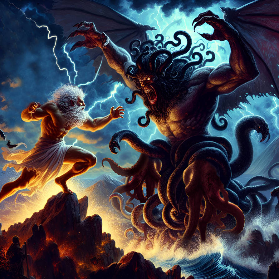 Kẻ hủy diệt những ngôi sao (ám chỉ những vị thần trên đỉnh Olympia), Kẻ sát chúa, Hung thần của các vị thần, Sát nhân trên bầu trời... có lẽ không từ ngữ nào đủ hoàn toàn để mô tả tầm vóc của con quái vật này trong Thần thoại Hy Lạp, bởi có lẽ Typhon là sự kết hợp của tất cả những gì khủng khiếp nhất dành cho các vị đại thần trên đỉnh núi kia. Typhon được sinh ra bởi đất mẹ Gaia và vực sâu thẳm Tartarus, với nung nấu ngay từ khi sinh ra sẽ giết chết thần Zeus sau khi ông đã đánh bại và giam cầm các Titan như đã kể ở trên.
