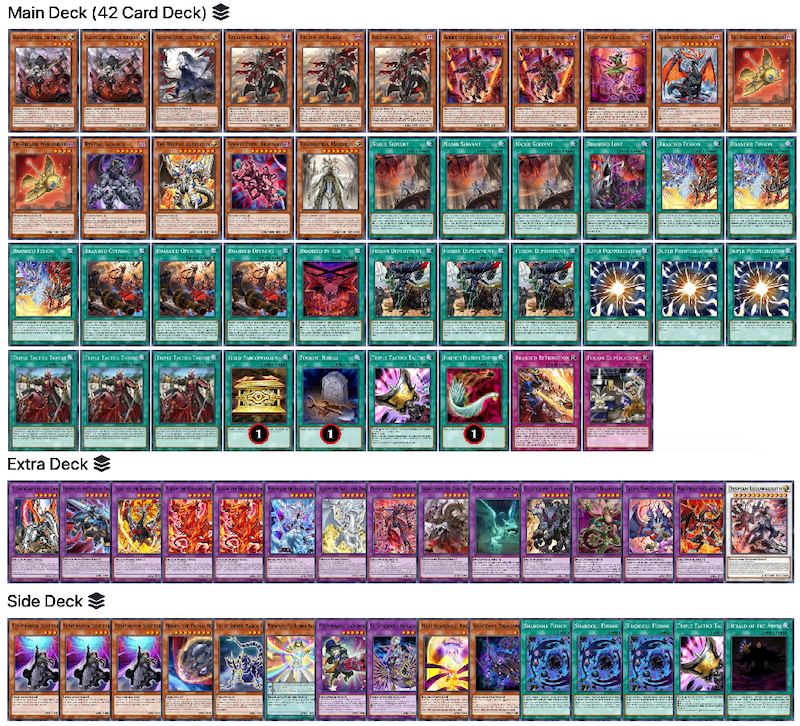 - Các Fire Kings gần như sẽ luôn có các Boss ở dưới Mộ để "quậy phá" nên Triple Tactics Talent sẽ luôn có cơ hội để tỏa sáng. Trong khi đó Nibiru lại tỏ ra hiệu quả cực cao bởi đa phần các Fire deck sẽ sử dụng Link Summon rất nhiều lần để combo.