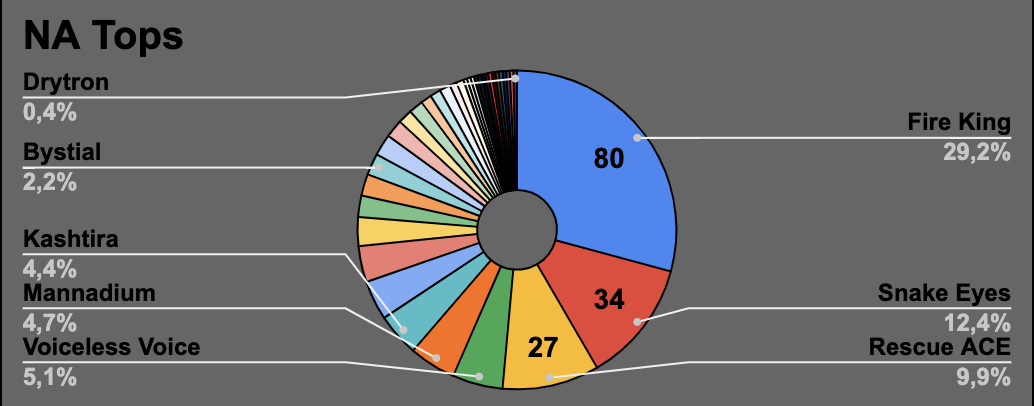 - Không nằm ngoài dự đoán, Fire Kings cùng các biến thể của Snake Eyes đã và đang thống trị toàn bộ các giải đấu lớn nhỏ.