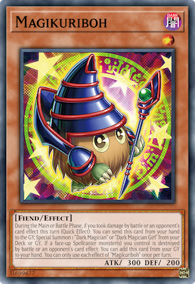 Đây có lẽ là sự lựa chọn khiến nhiều người cảm thấy rất vô lý, nhưng phần giải thích dưới đây sẽ khiến nó vô cùng thuyết phục! Magikuriboh về cơ bản là 1 handtrap. Trong Giai đoạn Chính (Main Phase) hoặc Giai đoạn Chiến đấu (Battle Phase) của một trong hai bài thủ, nếu phải chịu thiệt hại từ tấn công hay hiệu ứng đặc biệt, người chơi có thể đưa Magikuriboh từ tay xuống mộ để Triệu hồi Đặc biệt Dark Magician (hoặc Dark Magician Girl) từ trong bộ bài hoặc dưới mộ. Về cơ bản. bài thủ sẽ sở hữu một quái thú tương đối cơ bắp để đổi lại cho việc nhận thiệt hại. Trong Giai đoạn Chiến đấu, điều này có thể giúp người chơi tránh được một trận thua bởi ít nhất cũng đã chặn được một đòn tấn công. Hoặc nếu đang trong Giai đoạn Chính, bài thủ có thể có thêm một quái thú nữa để chơi.