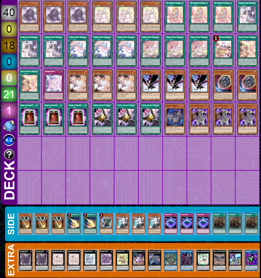 Cho dù Purrely Delicious Memory Purrely bị limited, Purrely vẫn liên tục đứng đầu danh sách những bộ bài thuộc top meta. Với việc Purrely Sleepy Memory không bị ảnh hưởng trong danh sách cấm và Epurrely Noir được ra mắt đã đưa bộ bài này quay trở lại "cuộc đua". Sử dụng một core deck mỏng nhẹ và lấp đầy với các lá bài non-engine khác nhau để phù hợp với các format khác nhau. Expurrely Noir vẫn là một vật cản khó nhằn khiến đối thủ rất đau đầu để vượt qua.