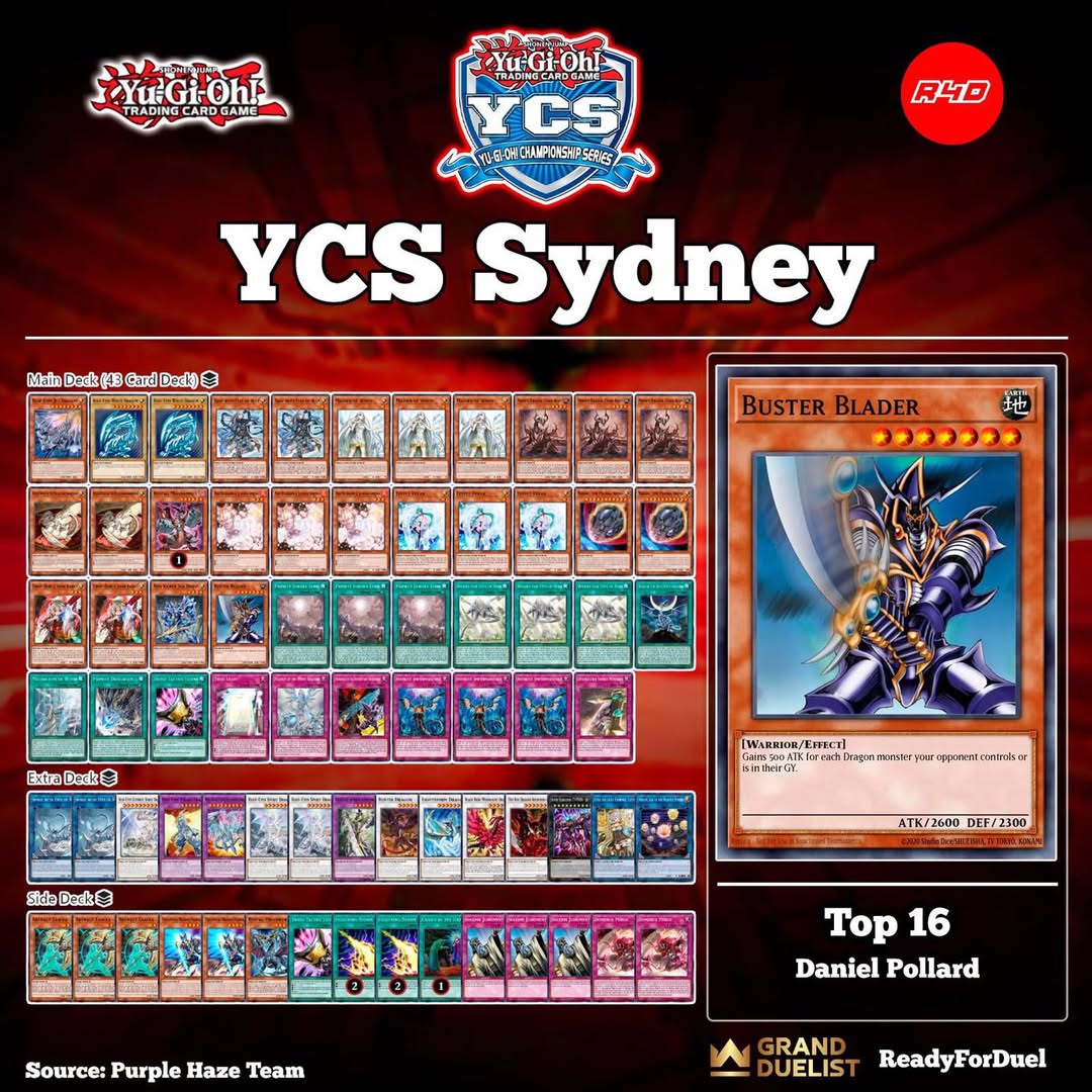 Sáng tạo từ khung Primite Blue-Eyes cơ bản, Daniel Pollard đã tech thêm engine Buster Blader, góp phần giúp anh giành Top 16 YCS Sydney vừa qua.