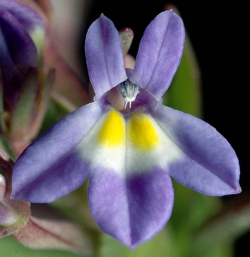 Trong artwork, Elfnote Tinia mang dáng đứng thanh mảnh, ánh nhìn hướng xa như người canh giữ rừng đêm; bảng màu lam–tím lạnh gợi mặt trăng và không gian hoang dã. Hoa Downingia yina - Hoa chuông —nhỏ bé, mong manh, nở ở những vùng ẩm lạnh—được lồng ghép như một điểm sáng tinh khiết giữa bố cục, với sắc xanh tím và họng hoa nhạt đối xứng cùng ánh nguyệt. Sự kết hợp này nhấn mạnh vẻ đẹp kín đáo nhưng bền bỉ: sức mạnh không phô trương, mà tồn tại trong cân bằng và kỷ luật của tự nhiên.