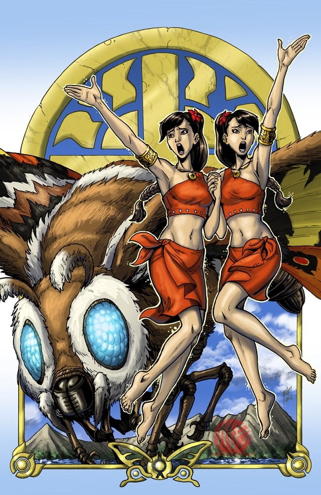Khắc họa Mothra bay lên tòa nhà cao nhất để giải cứu Shobijin