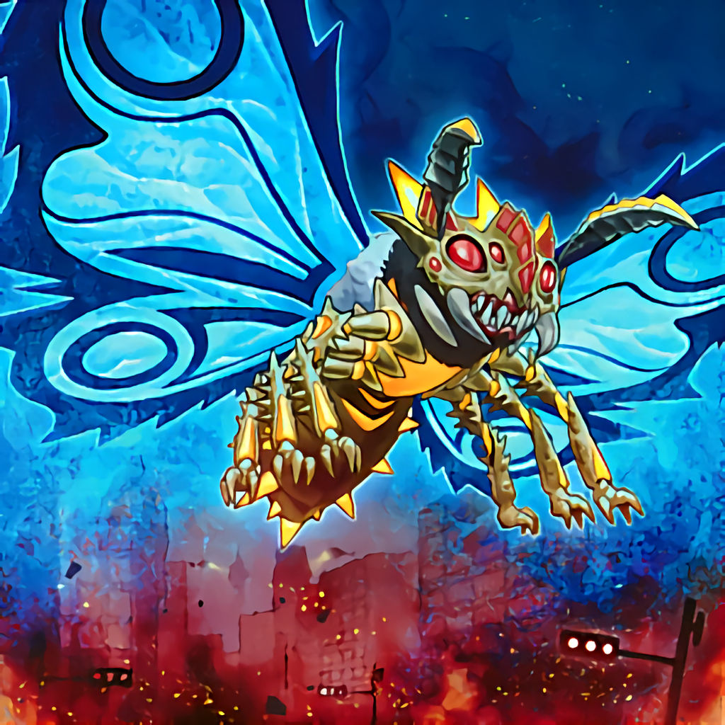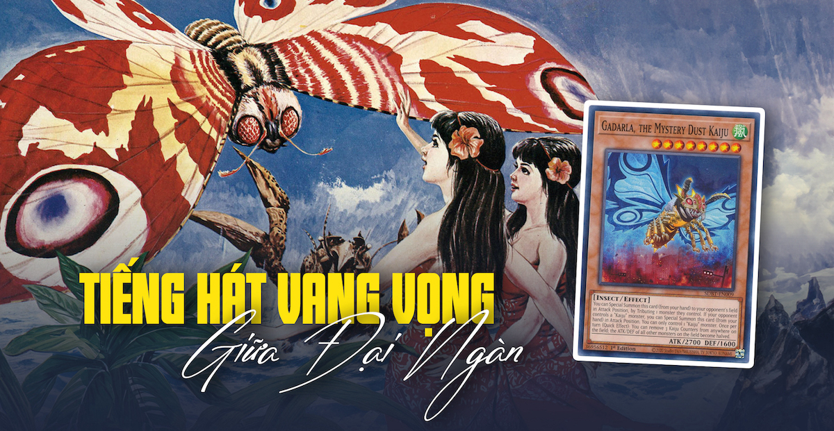 Xa xưa, trước khi con người biết đến thép và lửa, giữa đại dương xanh thẳm có một hòn đảo thần bí tên là Infant Island. Ở đó, không có chiến tranh, không có tiếng khóc than, chỉ có rừng rậm nguyên sinh, những dòng suối tinh khiết và một loài thần thú vĩ đại – Mothra, nữ thần bướm khổng lồ, người bảo hộ của thiên nhiên. Tài tình thay, thần thú Mothra đấy được khắc họa vào Yugioh với cái tên Gadarla, the Mystery Dust Kaiju cũng mang trọn vẹn những mô tả như vậy. Ánh mắt đỏ ngầu, thân hình to lớn, nhưng trên hết đó là sải cánh rộng như muốn che phủ cả thành phố đang chìm trong biển lửa chính là nét thị uy sức mạnh bảo hộ vùng đất Infant của loài nữ hoàng bướm này.
