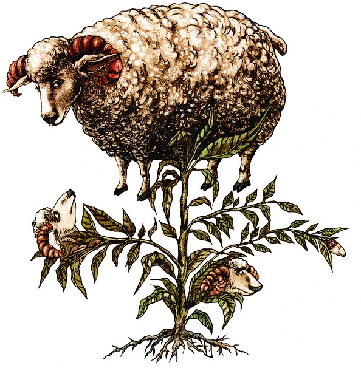 Tương truyền, hạt giống của nó khi rơi xuống đất sẽ nảy mầm thành một cái thân cây mảnh mai, cao khoảng một mét. Trên đỉnh thân cây ấy, không phải hoa hay quả, mà là một con cừu bé xíu, bao phủ bởi lớp lông mềm mịn như bông gòn. Sợi dây thân cây này chính là cuống rốn, gắn chặt con cừu với gốc cây, cung cấp chất dinh dưỡng từ lòng đất.