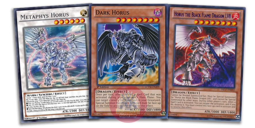 Horus trong mô tả của sử thi Ai Cập thì mang dáng vẻ là đầu chim ưng với con mắt nổi tiếng có sức mạnh để trấn hưng sử thi Ai Cập. Trong Yugioh, hình tượng Horus cũng được cập nhật từ rất lâu với những phác hoạ tương đối chân thực với những ghi chép được mô tả lại. Một chiếc đầu chim ưng, cơ thể bọc giáp là những chiếc vảy lấp lánh, con mắt được phác hoạ có màu sáng rực và một đôi cánh hùng vĩ như để che chở cả giang sơn!