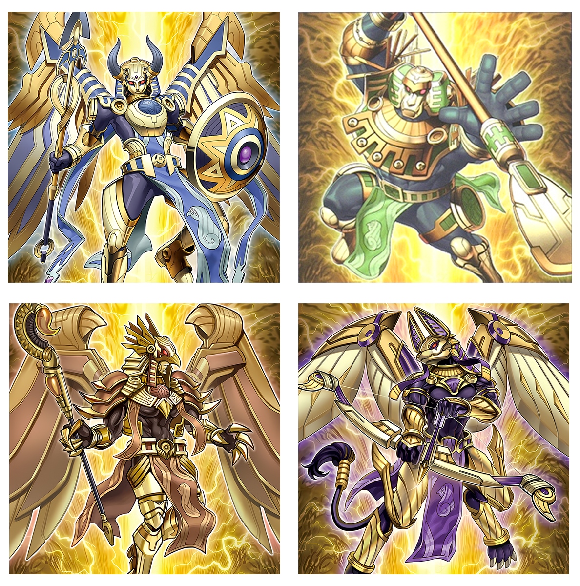 Tuy nhiên, thế giới Yugioh mới chỉ dừng lại ở việc mô tả về Horus, và phải mãi cho đến tháng 08/2023, những hậu duệ của ngài mới được thiết kế trong set Age of Overlord (tạm dịch: Kỷ nguyên của chúa tể) như thể muốn nhắc đến cả một thời đại hưng thịnh của một dân tộc anh hùng. Theo đó, Horus có 4 người con trai ưu tú. Họ có tên là Imsety, Hapy, Duamutef, và Qebehsenuef với những mô tả lại rằng Imsety là anh cả sở hữu chiếc đầu người, Hapy sở hữu đầu của khỉ đầu chó , Duamutef có chiếc đầu chó và Qebehsenuef có chiếc đầu của một con chim ưng!