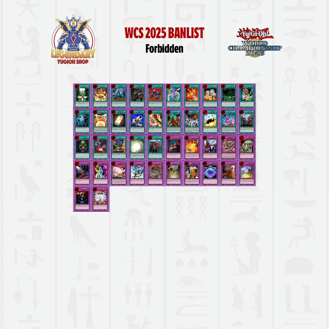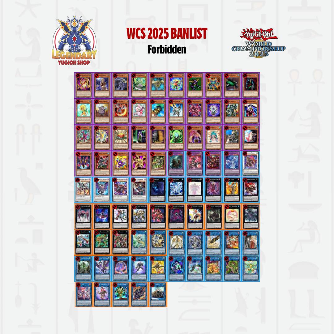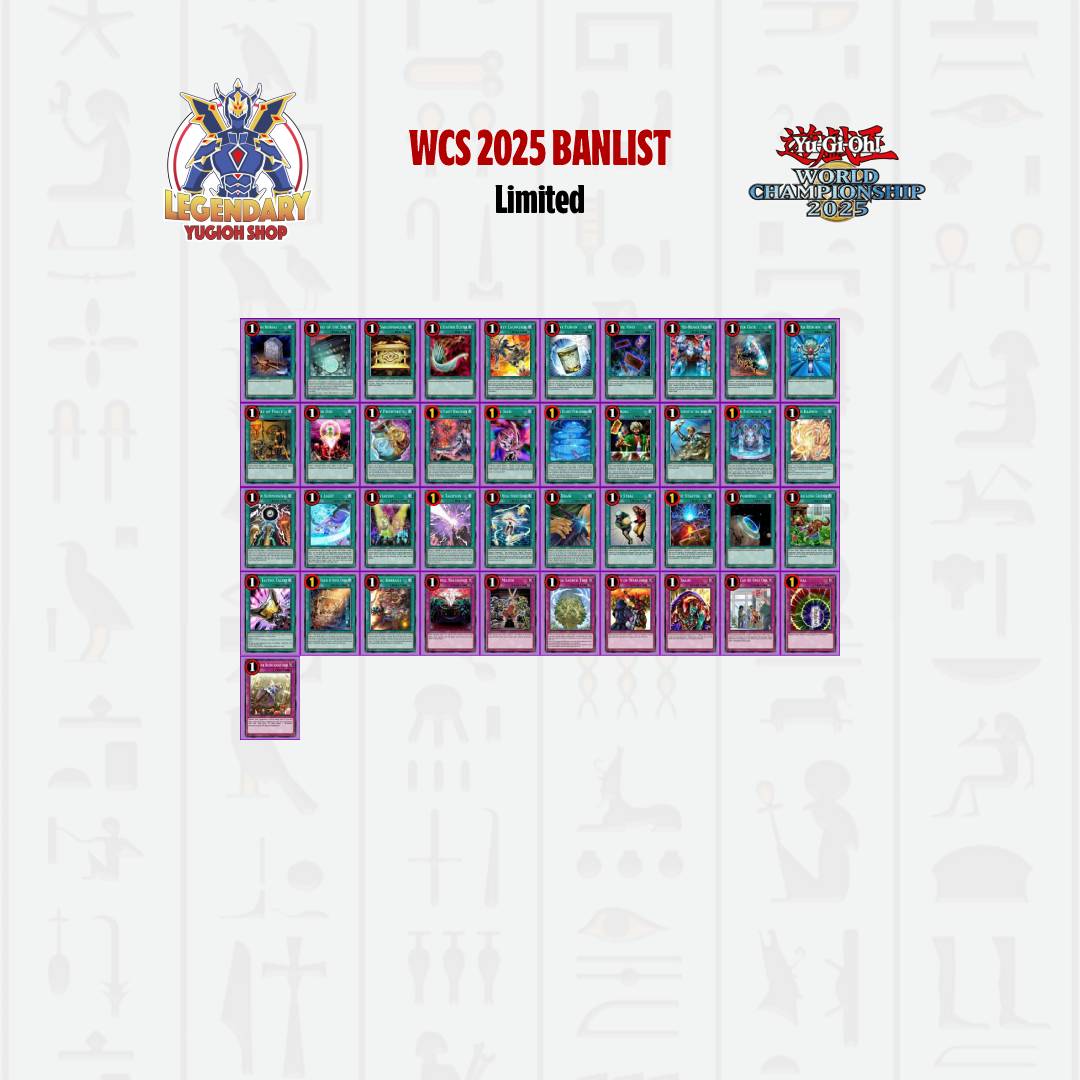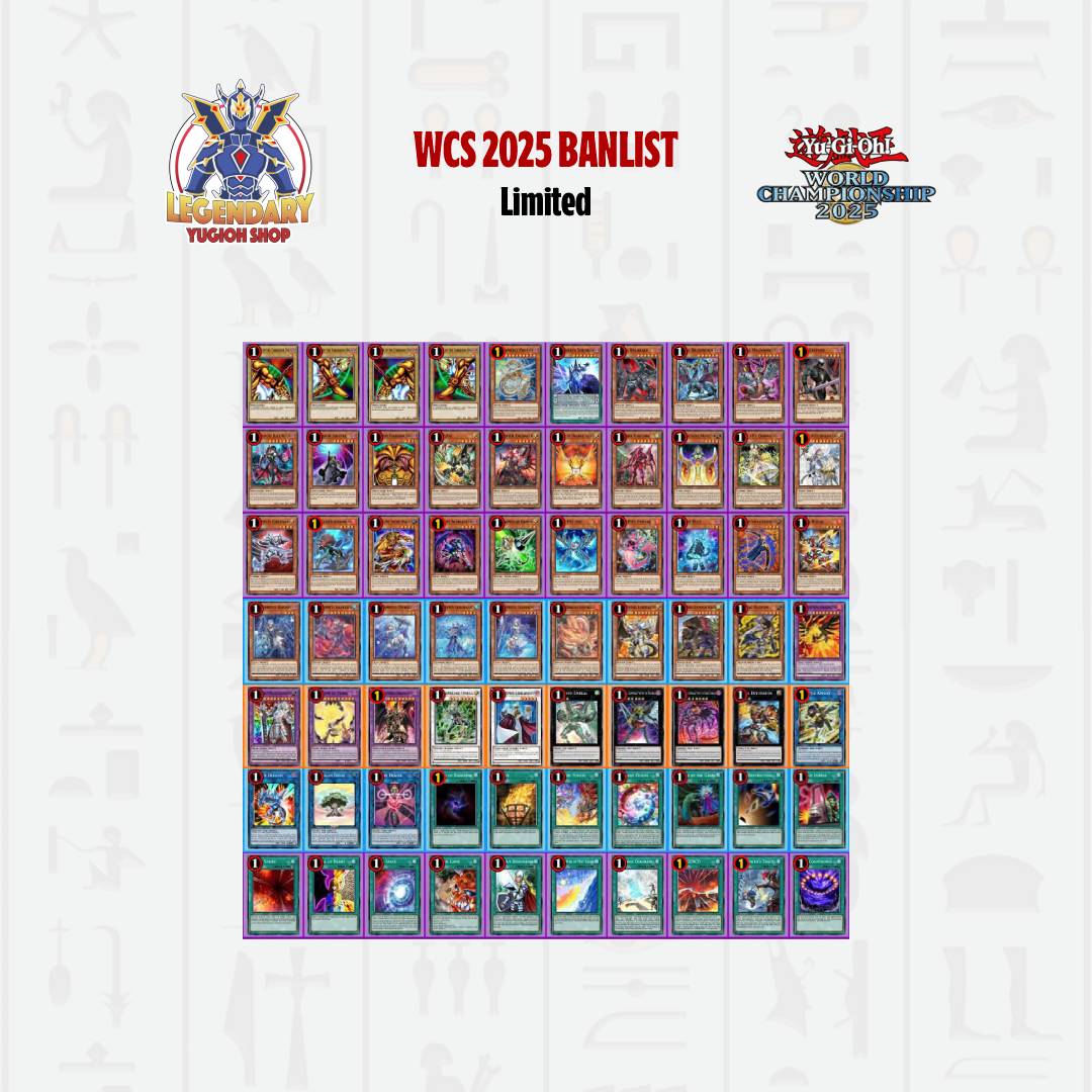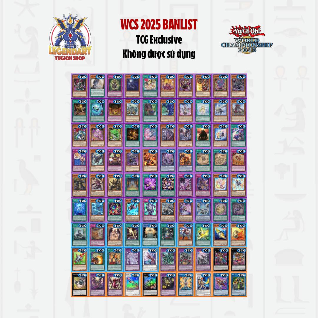 Mọi lá bài đều chỉ được dùng tối đa theo banlist mà nó bị hit nặng nhất, ví dụ Maxx "C" được thả 2 tại OCG nhưng bị Ban tại TCG thì sẽ bị Ban tại WCS, Kashtira Fenrir 3 tại TCG nhưng Ban tại OCG thì sẽ Ban tại WCS. Điều này dẫn tới không chỉ một số các generic card quen thuộc sẽ không được sử dụng, mà các deck / engine cũng có thể bị hit theo nhiều cách khác nhau.