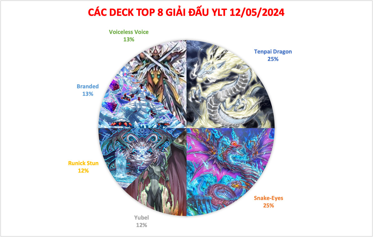 Trải qua 5 round khốc liệt, những cái tên vào top gồm có 2 Tenpai Dragon, 1 Yubel, 1 Branded Chimera, 1 Runick, 1 Snake-Eyes thuần, 1 Snake-Eyes Kashtira và 1 Voiceless Voice. Đây là điều đã dược dự đoán trước và cũng được thể hiện rõ nét trong giải đấu này. Yubel với sự khó chịu trong lối chơi đã lọt top với thành tích cực kỳ ấn tượng. Các deck chống meta dù chiếm số lượng lớn, nhưng cũng đã tự tiêu diệt nhau ngay trong vòng loại, khiến cho không có đại diện nào qua được vòng đấu này.