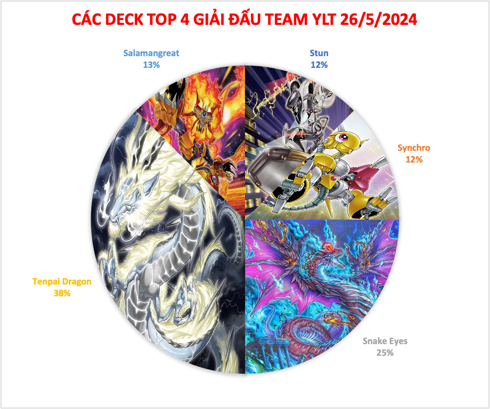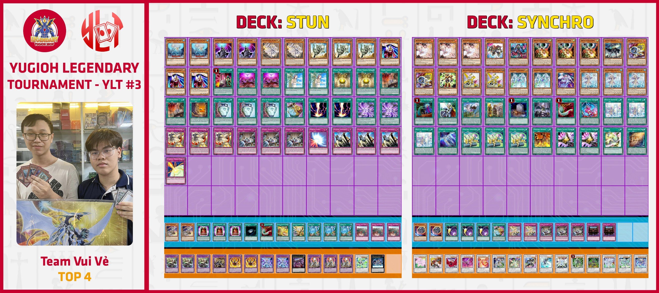 Chúng tôi ghi nhận 14 team đấu tham gia với những bộ bài mạnh mẽ nhất. Tenpai Dragon và Snake-Eyes Fire King chính là những kẻ dẫn đầu meta mùa này. Sức mạnh vượt trội của cả 2 khiến cho các bài thủ đều tin dùng trong 1 kèo 2v2 như thế này. Chúng tôi cũng ghi nhận sự vắng bóng hoàn toàn của những Voiceless Voice hay Labrynth - những bộ bài không hề bị ảnh hưởng ở sức mạnh nhưng vẫn chưa được tin dùng hôm nay. Những tên tuổi khác ở TCG cũng tham gia vào bữa tiệc giải hôm nay như Branded hay Purrely. Bên cạnh đó, vì là 1 giải đồng đội, nên những bộ bài anti-meta như Stun hay Runick cũng được tin dùng. Sự khó chịu của những floodgate đã mang về chức top 4 cho Team Vui Vẻ gồm có Nguyễn Hoàng Tùng (Synchro) và Dương Đình Quân (Stun). Chúng tôi cũng cho phép sự hỗ trợ lẫn nhau trong khi thi đấu cũng như có thể đổi deck sau mỗi vòng loại nhằm tăng sự tính toán cho các bài thủ.