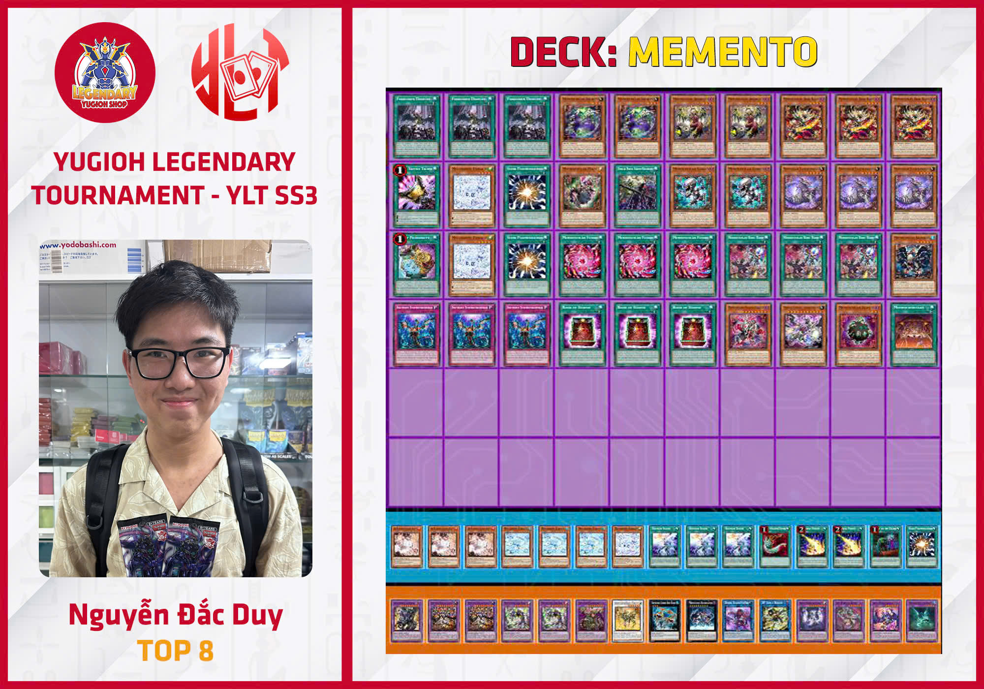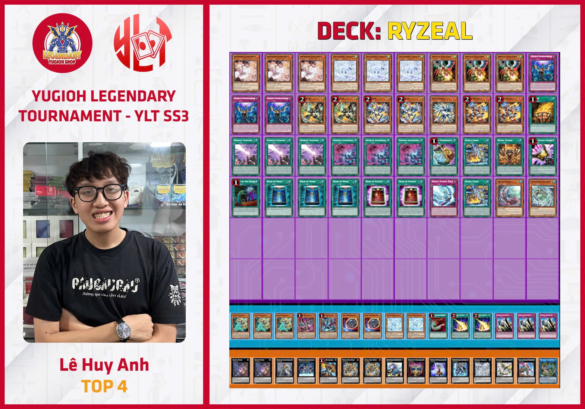Hưởng ứng bởi banlist TCG ra mắt cách đây không lâu, các bài thủ TCG đã xuất hiện và tham gia giải đấu với con số kỷ lục: 40 bài thủ. Trong đó, đặc biệt ghi nhận sự góp mặt của bài thủ Henrik – Top 2 National Đức cũng tham chiến cho giải đấu vô cùng chuyên nghiệp này. Điều này cho thấy tiếng vang của YLT đã được đông đảo cộng đồng người chơi tại Hà Nội đón nhận và hưởng ứng. Với số lượng bài thủ kỷ lục này, phần thưởng cũng được gia tăng cho top 16 cùng nhiều sản phẩm giá trị dành cho top các bài thủ tham gia.