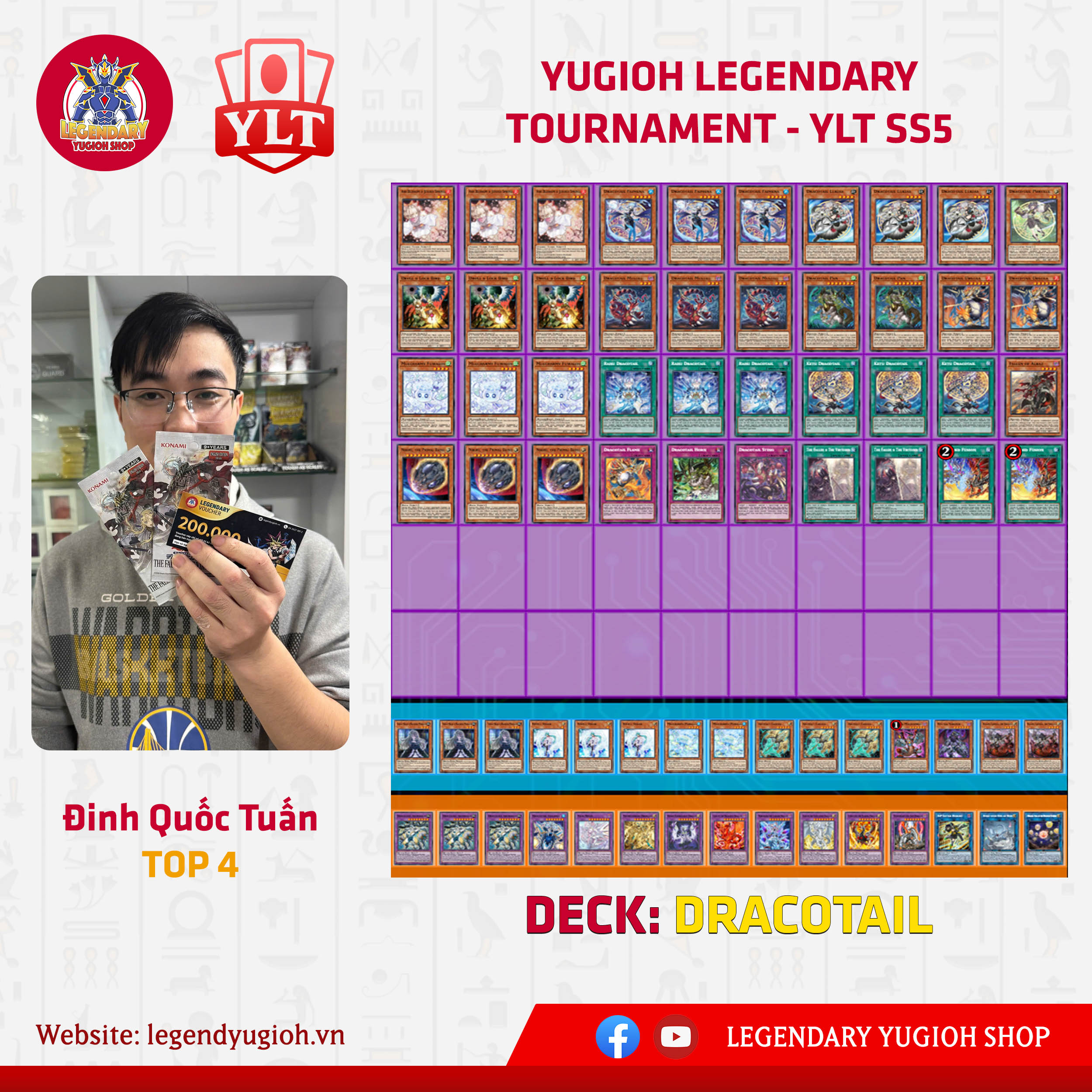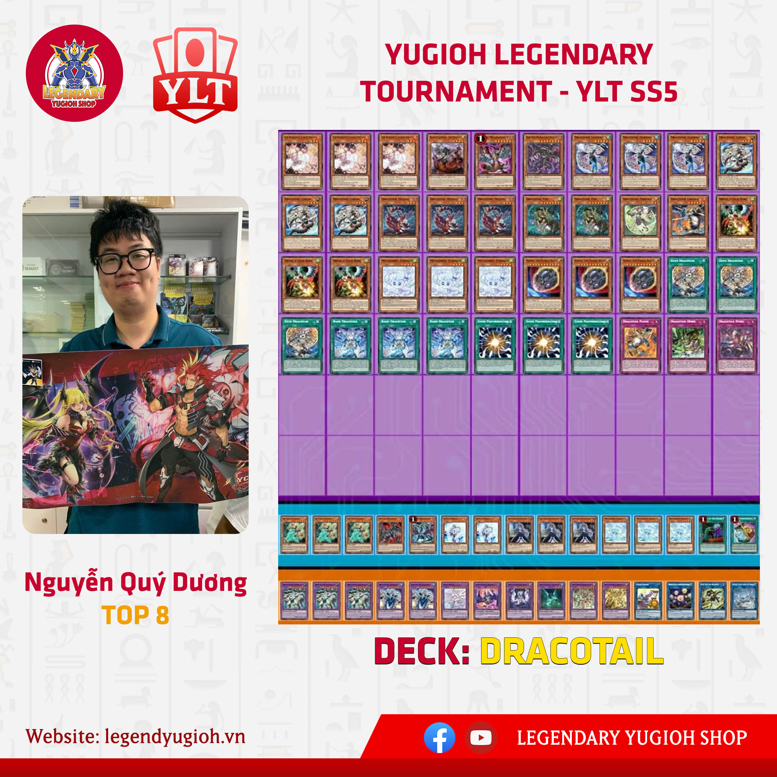 Điểm qua về meta trước giải đấu, sản phẩm mới nhất đến từ Konami - THE CHRONICLES DECK: The Fallen & The Virtuous đem tới vô cùng nhiều support thú vị cho archertype được yêu thích bậc nhất: Branded. Bên cạnh việc in lại nhiều staple mạnh mẽ như Triple Tactic Thrust hay engine Bystial, sản phẩm này cũng đem tới lá bài Quick-Play Spell generic mới vô cùng mạnh mẽ The Fallen & The Virtuous. Với khả năng destroy 1 face-up card trên sân cũng như send được Albion the Branded Dragon, giúp có thể tự search lại thêm chính 1 copy khác của bản thân trong end phase, lá bài này đang dần được ưa chuộng như là một staple cơ động, giúp tăng khả năng bắn phá xử lý tình huống của các chiến thuật control. Điển hình là build Dracotail Branded đang làm mưa làm gió suốt những ngày vừa qua bên TCG khi Branded Fusion giúp vào được engine Dracotail, cũng như setup board cứng hơn. The Fallen & The Virtuous vừa giúp bắn phá, vừa có thể làm follow-up khi Albion search Branded Fusion. Đặc biệt là tech card Titaniklad the Ash Dragon giúp giờ đây Dracotail có thể beatdown được boss chủ lực của Lunalight - Lunalight Liger Dancer. Dự đoán giải đấu sẽ là màn thể hiện áp đảo của chiến thuật Dracotail.
