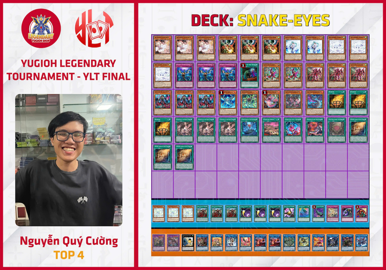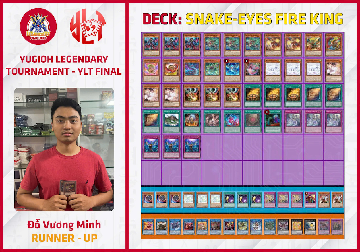 6 round thi đấu kết thúc, những cái tên cuối cùng trong top 8 đều là những meta top cao nhất tại TCG gồm có: Unchained Fiendsmith, 3 Yubel Fiendsmith, Tearlament, 2 Fireking Snake-Eyes Azamina, Tenpai Dragon. Tuy nhiên, trận chung kết chỉ được quyết định bởi Vũ Minh Hiếu (Tenpai Dragon) và Đỗ Vương Minh (Fireking Snake-Eyes Azamina). Tại đây, những pha rút lên Shifter và Heatwave cực đúng lúc chính là chìa khóa để Tenpai Dragon đè bẹp đối thủ một cách chóng vánh khi mà gần như 2 lá bài này resolve thành công, Fireking không thể nào thi triển được lối chơi của mình. Xin chúc mừng Vũ Hiếu đã lên ngôi vô địch trong một trận chung kết hoàn toàn xứng đáng!