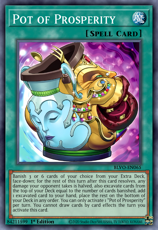 Không bị phụ thuộc vào các quái thú trong extra deck, Pot of Prosperity là một lựa chọn hoàn hảo cho Vanquish Soul khi giúp người chơi tìm các lá bài chủ lực của bộ bài mà không cần suy nghĩ quá nhiều khi tự banish 6 lá bài trong extra.