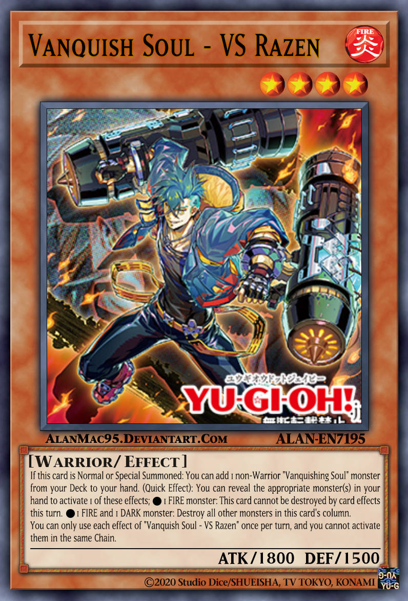 Có nhiều cách để triệu hồi đặc biệt quái vật Vanquish Soul thông qua các hiệu ứng nhanh. Điều này cho phép bạn tận dụng hiệu ứng của Razen để tiêu diệt tất cả quái vật khác trong cột (column) của nó. Đây là chủ lực chính giúp tìm kiếm toàn bộ quái thú của tộc bài này. Bộ bài Vanquish Soul cần có càng nhiều thuộc tính trong tay càng tốt để tất cả quái vật có thể sử dụng hiệu ứng của chúng, vì vậy Razen đóng vai trò đặc biệt quan trọng trong việc lấy được các thuộc tính còn thiếu.